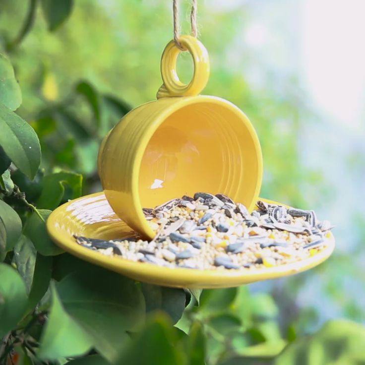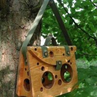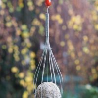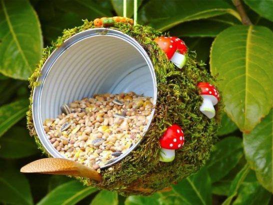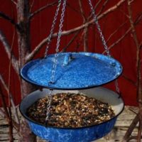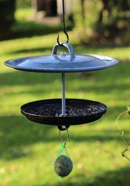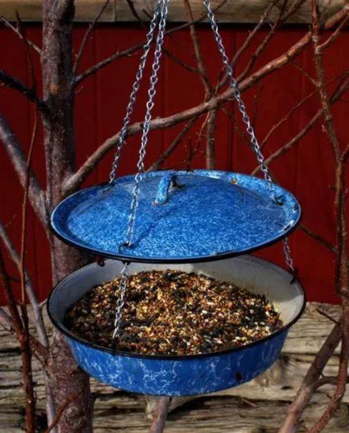 - La deuxième option est une mangeoire fabriquée à partir d'un beurrier.Prenez un vieux beurrier ou une petite casserole, nettoyez-le de toute trace d'huile et fixez-y une anse ou un fil de fer pour le suspendre. Remplissez-le d'un mélange de graines et de noix et suspendez-le à un endroit approprié. Les oiseaux apprécieront cette friandise et votre attention.
