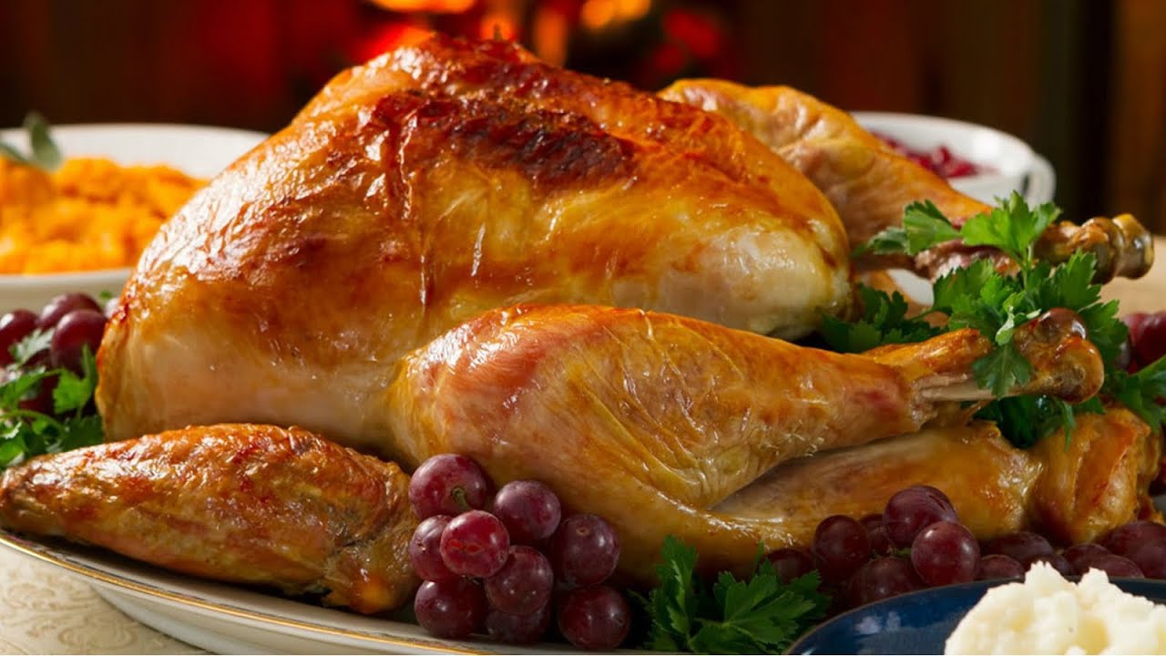 Déposez la dinde cuite sur un plat et servez-la avec une choucroute sucrée à base de chou de Savoie.