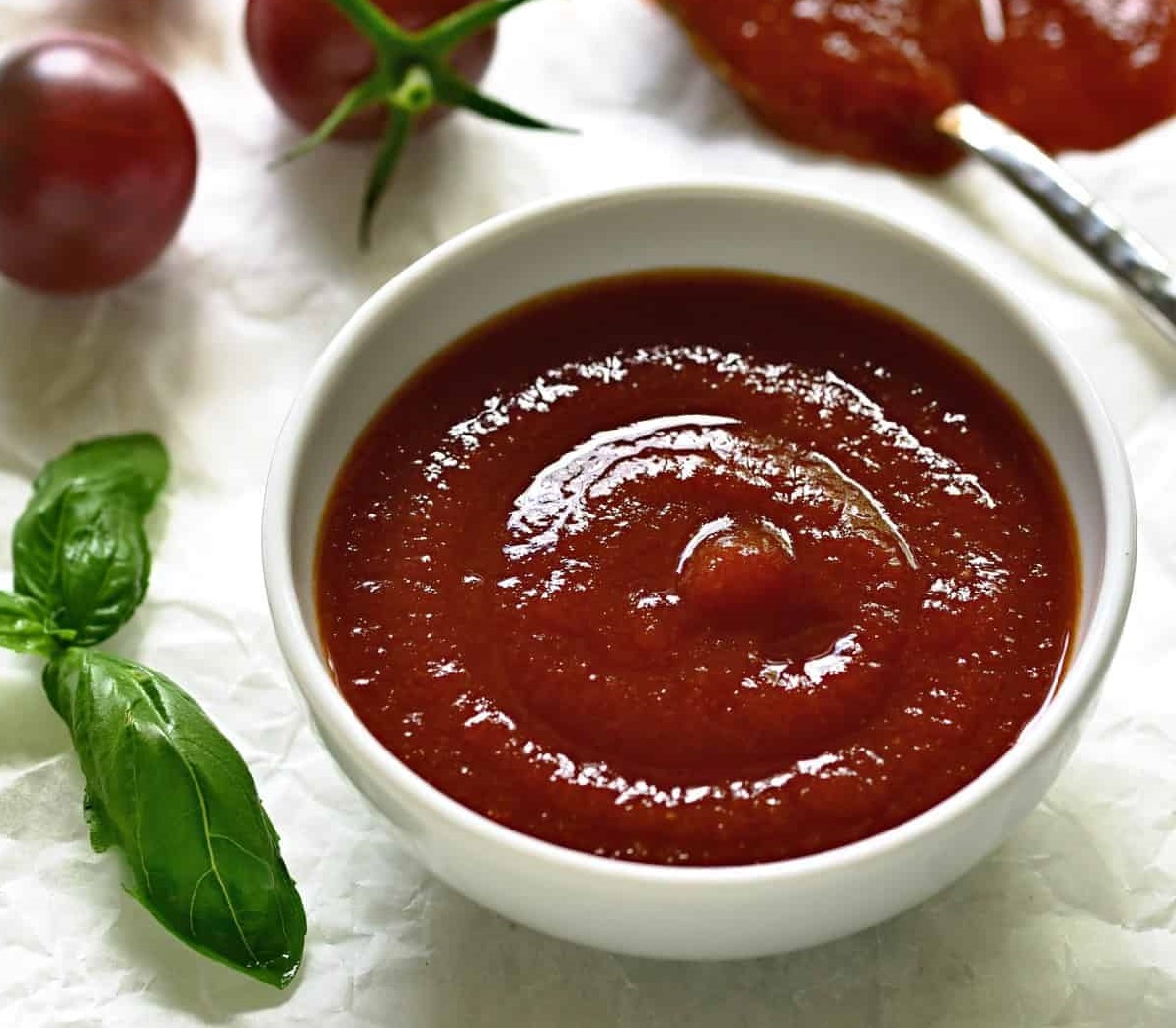 - Laissez le ketchup refroidir, puis versez-le dans un grand bocal ou deux petits bocaux stérilisés. Fermez hermétiquement et conservez dans un endroit frais et sombre.
