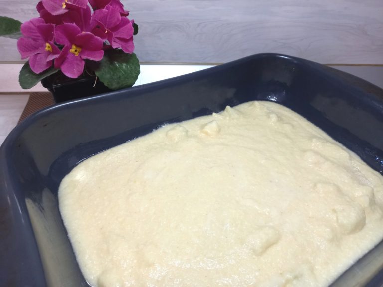 - Huilez un plat à four avec de l'huile végétale et étalez-y la pâte uniformément. Faites cuire le gâteau au four pendant 40 minutes, jusqu'à ce qu'il soit légèrement doré. Servez chaud ou froid, coupé en portions.