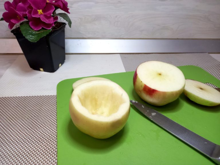 - Lavez soigneusement les pommes et coupez les queues. Retirez la chair en laissant les bords et les bases intacts.