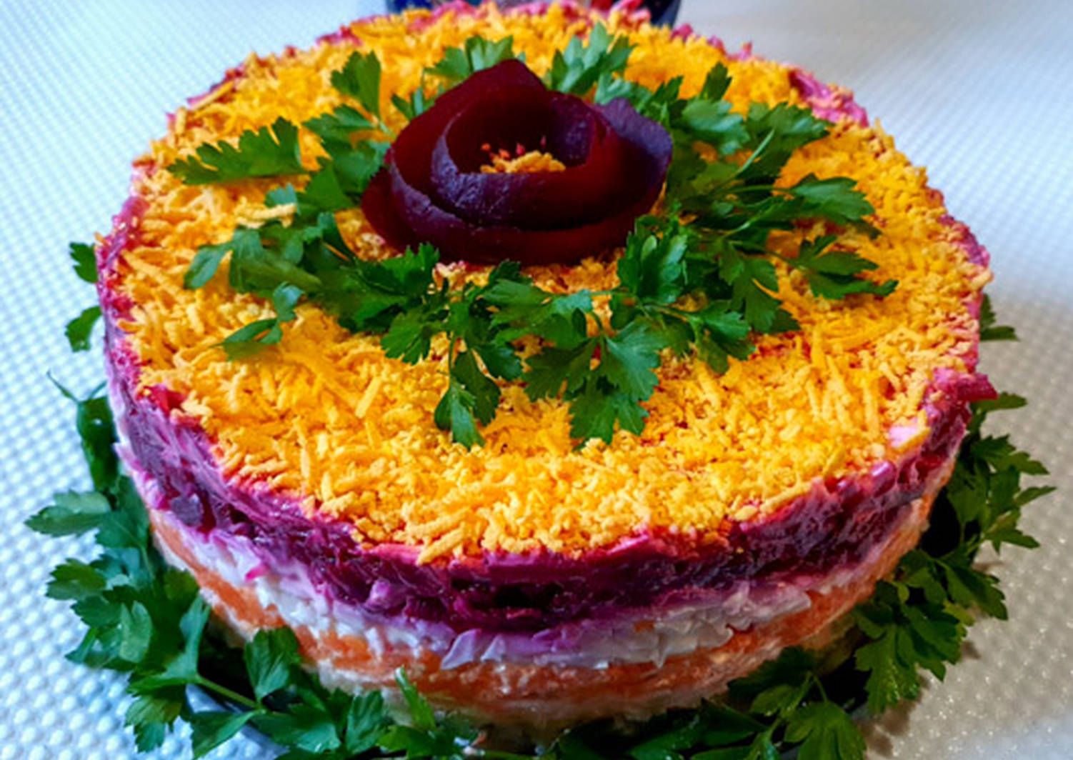 La dernière couche est composée de betteraves, également salées et enrobées de mayonnaise.