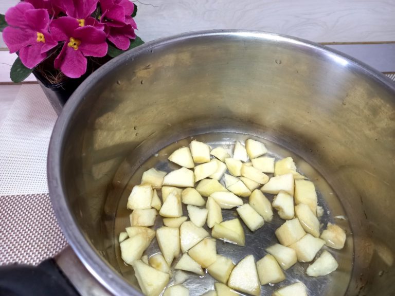 - Déposez les pommes dans une casserole à fond épais, couvrez-les d'eau et laissez mijoter à feu doux jusqu'à ce que les pommes soient complètement tendres.