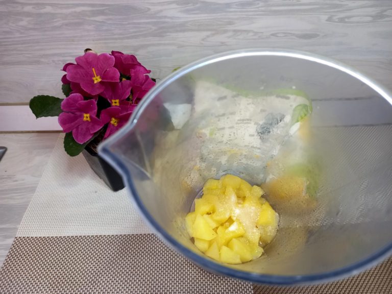 - Placez les pommes cuites dans un blender. Ajoutez le sucre et la vanille et mixez jusqu'à obtenir une purée lisse.
