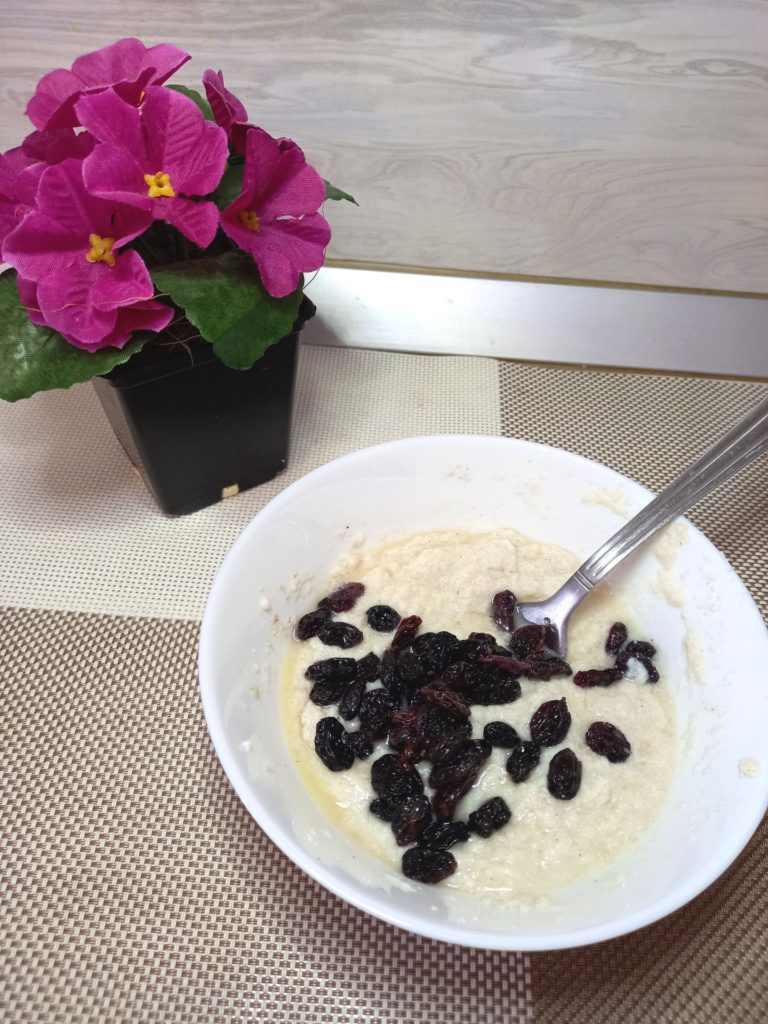 - Triez les raisins secs, égouttez-les et ajoutez-les au mélange de fromage blanc. Mélangez le tout.