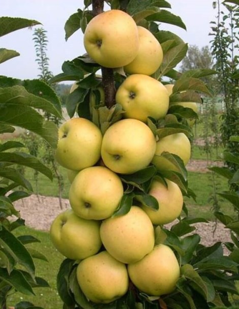 Ces pommiers sont véritablement compacts et à croissance rapide. Poussant en formation colonnaire, ils n'occupent pas plus d'un demi-mètre carré, permettant des plantations très denses pour une récolte abondante. La hauteur maximale de l'arbre est d'environ 2,2 à 2,5 mètres.Et ce, sans taille de formation appropriée. Le tronc est recouvert d'une écorce lisse et pubescente, brun cerise ou brune, qui a tendance à se fissurer avec le temps. La fructification se produit sur les rameaux fructifères qui poussent directement sur le tronc.
