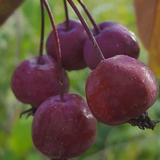 Les fruits sont très petits, à peine plus gros qu'une cerise. Ils pèsent au maximum 2 à 5 grammes et mesurent jusqu'à 1 à 1,3 centimètre de diamètre. Ils sont ronds ou légèrement aplatis, et peuvent être légèrement allongés, mais c'est rare. Les pommes sont généralement irrégulières et asymétriques, avec des côtes prononcées, comme divisées en segments.