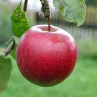 La peau est verte lorsqu'elle est jeune, puis jaunit avec l'âge. Elle se pare d'une belle teinte rouge vif qui couvre 75 à 90 % de sa surface. La surface des pommes est ferme, lisse et brillante, et peut présenter un léger enduit cireux leur donnant une nuance bleutée. La composition chimique est caractérisée par les indicateurs suivants pour 100 grammes de produit :