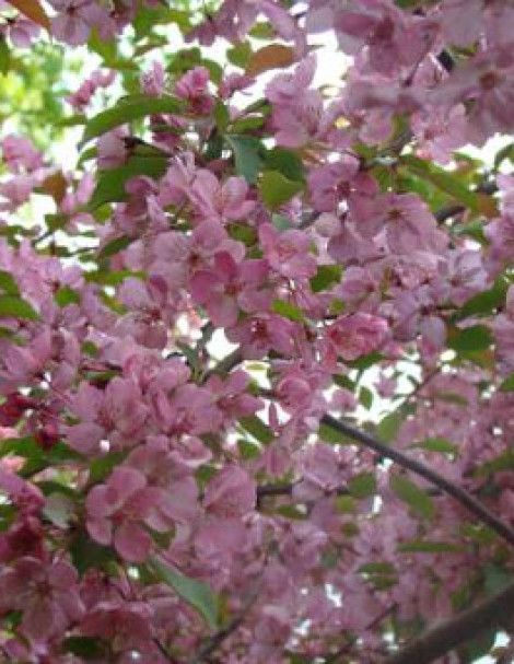 Le principal atout décoratif de cet arbre réside dans sa floraison abondante et prolongée. Elle débute début mai, dès l'arrivée des beaux jours, et dure au moins 16 à 21 jours. Les fleurs du pommier sont magnifiques, grandes et intensément parfumées. Elles sont groupées par 6 à 9, recouvrant densément les branches. Les boutons sont d'un rouge carmin intense ou d'un rouge vif, et après leur éclosion, les pétales prennent une teinte rose tendre, tout en conservant leur beauté et leur délicatesse.