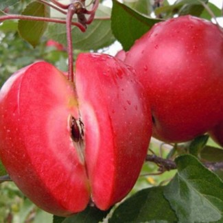 Ce fruit possède une chair agréable et fondante, à la fois croquante, tendre et juteuse. Sa texture est fine et sa chair assez dense, et son arôme délicieux rappelle celui des baies sauvages. La caractéristique la plus distinctive de cette variété est sa couleur : un rose rougeâtre profond, et non simplement strié. Le jus des pommes est également rouge et conserve sa couleur même après transformation. Les experts jugent sa saveur trop sucrée, avec une légère acidité, et elle ne révèle toute sa richesse qu'après quelques jours de conservation. Aucune évaluation gustative officielle n'a encore été publiée.