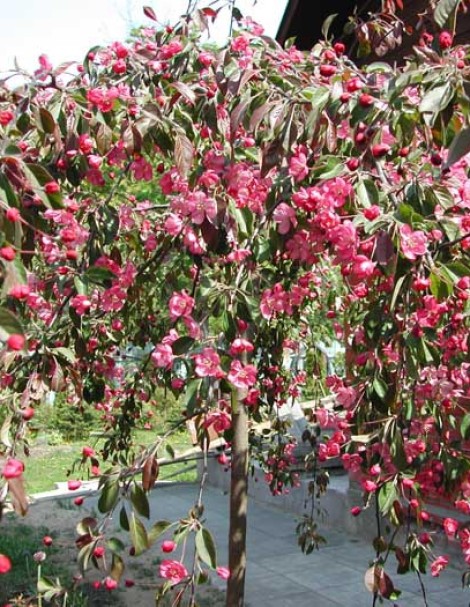 Ce pommier à feuilles caduques rouges a immédiatement séduit les paysagistes du pays par ses qualités ornementales exceptionnelles. Il fructifie tôt et régulièrement, offrant une belle récolte de petits fruits.