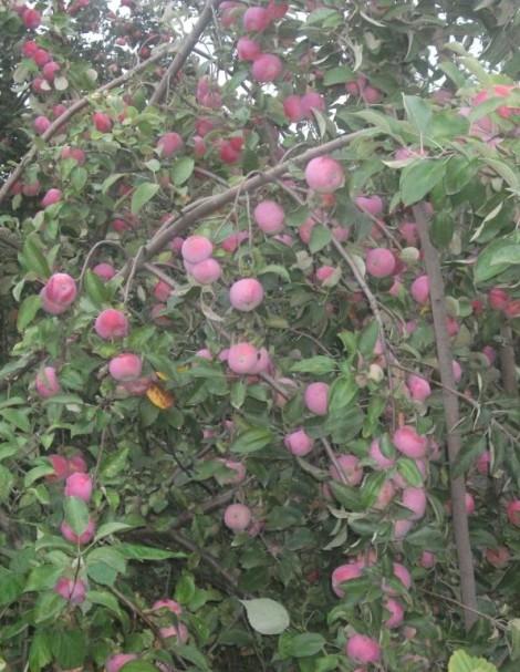 | Hiver | Les pommiers de cette sous-espèce se distinguent par leur cime sphérique et leurs petites feuilles coriaces, d'un vert foncé. La fructification peut se prolonger jusqu'à fin octobre, mais les pommes sont plus petites, ne dépassent pas 100 grammes, et ont une saveur acidulée prononcée. |