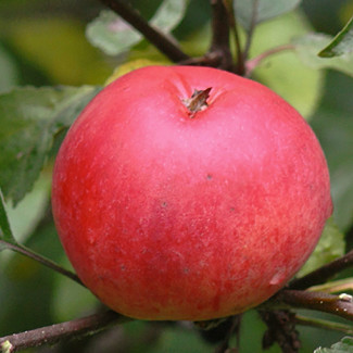 Pour Sibérie Les pommes de cette variété peuvent être qualifiées de grosses, mais elles sont en réalité de taille moyenne ou légèrement plus petites que la moyenne. Ces fruits rougeâtres atteignent un poids maximal de 85 à 130 grammes, sont de forme ronde ou conique et peuvent être légèrement aplatis. Les côtes sont souvent bien visibles à leur surface. Celle-ci est lisse, brillante et recouverte d'une pellicule cireuse bleuâtre qui s'enlève facilement.