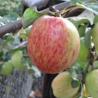 La peau de la pomme est dense, ferme, brillante et lisse, recouverte d'une fine pellicule cireuse qui s'enlève facilement au moindre contact. Sa couleur de base est verte, mais elle peut jaunir ou devenir crème à maturité. La coloration est vive, diffuse et striée, composée de larges rayures rouge vif sur un fond rosé. C'est ce qui donne aux pommes leur aspect « peint ». La composition chimique peut être caractérisée par les indicateurs suivants pour 100 grammes :