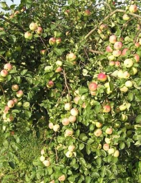 | Semi-nain | Ce porte-greffe produit des pommiers ne dépassant pas 2 à 2,5 mètres de hauteur. C'est une option très productive, capable de donner jusqu'à 150 kilogrammes de fruits aromatiques, mais elle présente plusieurs inconvénients. Premièrement, la durée de vie moyenne des arbres n'est que de 10 à 12 ans ; deuxièmement, elle exige des soins particuliers, notamment la protection contre les courants d'air et une humidité excessive ou insuffisante ; et troisièmement, la zone racinaire doit être butée 3 à 4 fois, bêchée et entretenue, en plus de nombreuses autres opérations d'entretien. |