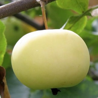 La peau de la pomme est lisse, brillante, fine et très tendre. Verte lorsqu'elle est verte, elle devient blanche ou légèrement jaunâtre, parfois même translucide, à maturité. Elle est recouverte d'une pellicule cireuse presque invisible qui s'enlève facilement. Les années ensoleillées, une légère teinte rose pâle et transparente peut apparaître à sa surface. Le pédoncule est fin et long, et les taches sous-cutanées sont peu nombreuses et plus claires que la peau, ce qui les rend presque invisibles. La composition chimique peut être caractérisée par les indicateurs suivants pour 100 grammes de produit :
